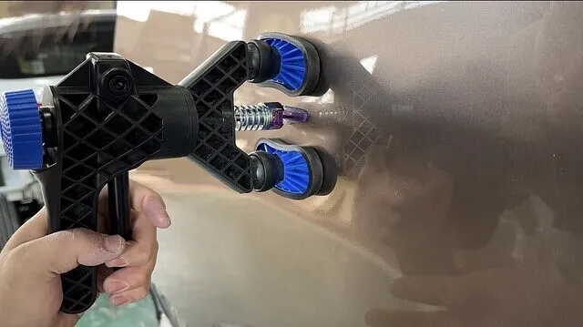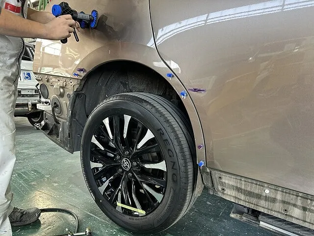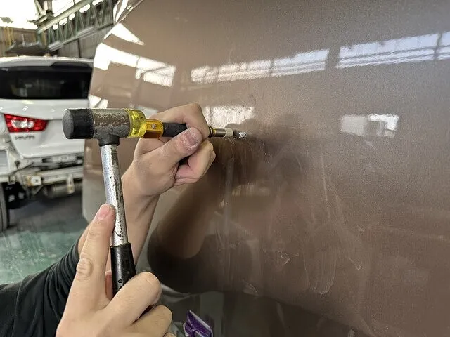 通常、車のへこみを直す際にはスタッド溶接機やはんだを使って金属を引き出す方法が一般的です。